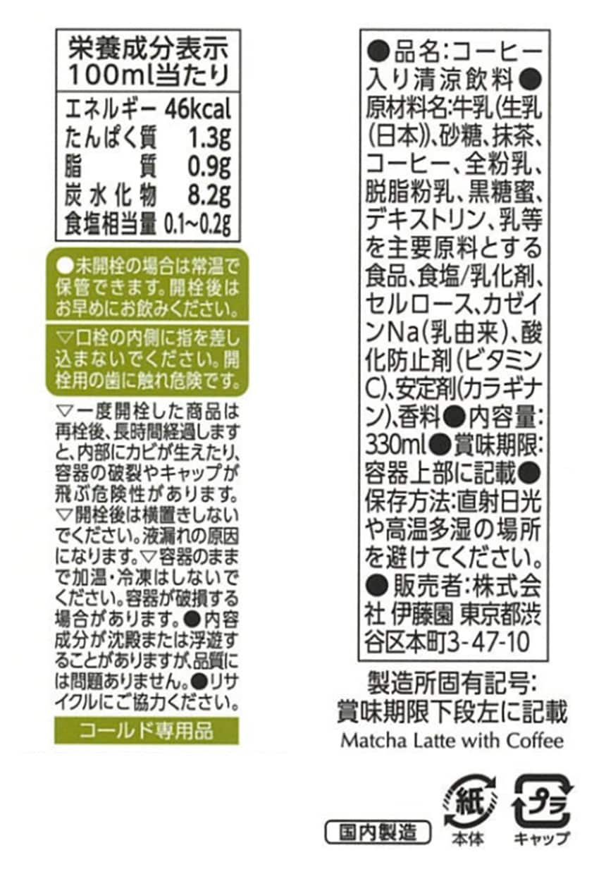 [36本]伊藤園 抹茶ラテ 沖縄県産黒糖&コーヒー キャップ付き紙パック 330ml | 新しい抹茶ラテ