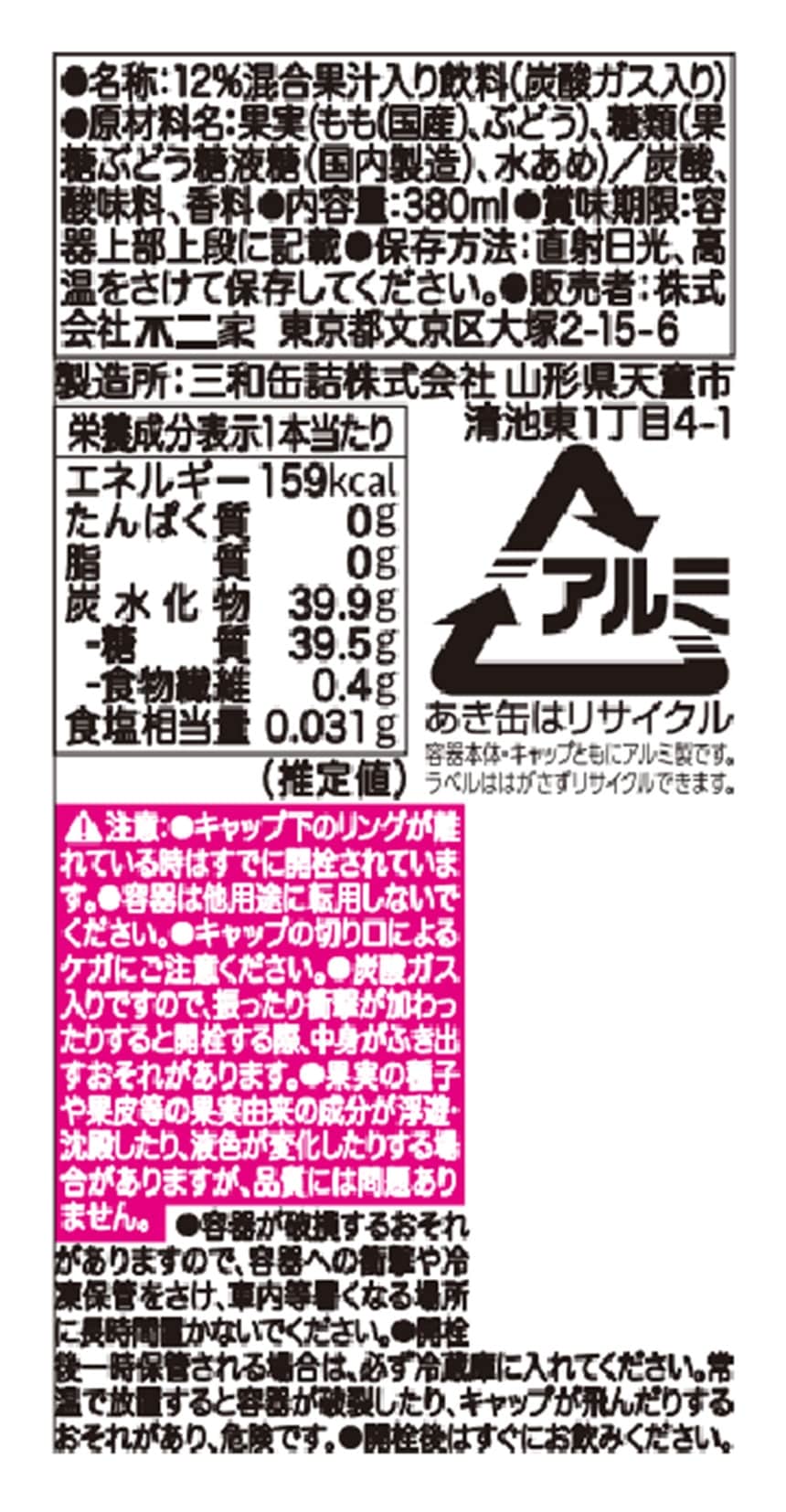 - 不二家 ネクタースパークリング 白桃&巨峰 ボトル缶 380ml