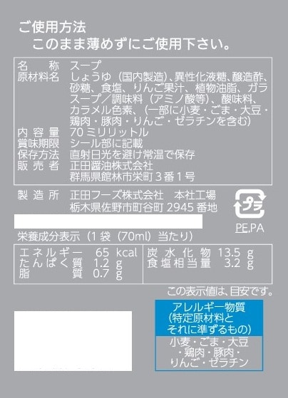 [70個]正田醤油 冷し中華スープKS 70ml | 程よい甘味、フルーティーなりんご果汁の風味が特徴のさわやかな味わいの冷し中華スープ。