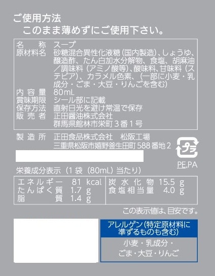 [100個]正田醤油 冷し中華スープ 80ml | 酸味と甘みが程よくブレンドされたコクのある味わいの冷し中華スープ。