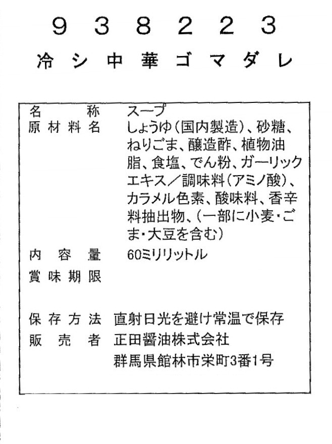 [240個]正田醤油 冷し中華スープ ゴマダレ 60ml | まろやかでコクのある練りごまをベースにした冷し中華スープ。