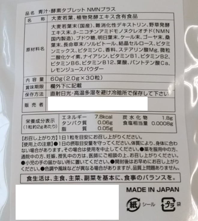 - 青汁酵素タブレットNMNプラス 60g