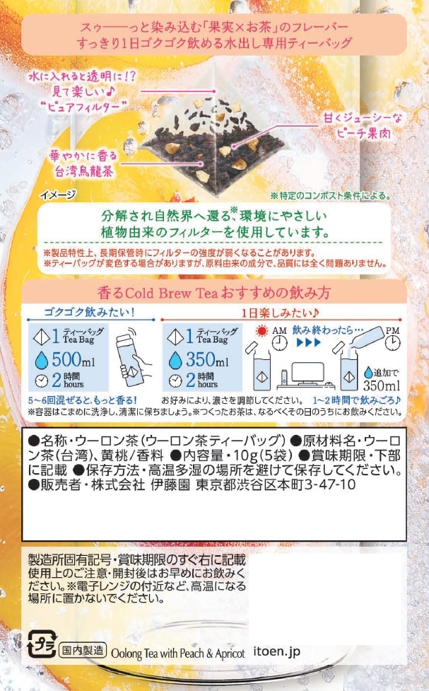 【香るCold Brew Tea 台湾烏龍茶×ピーチアプリコット ティーバッグ】