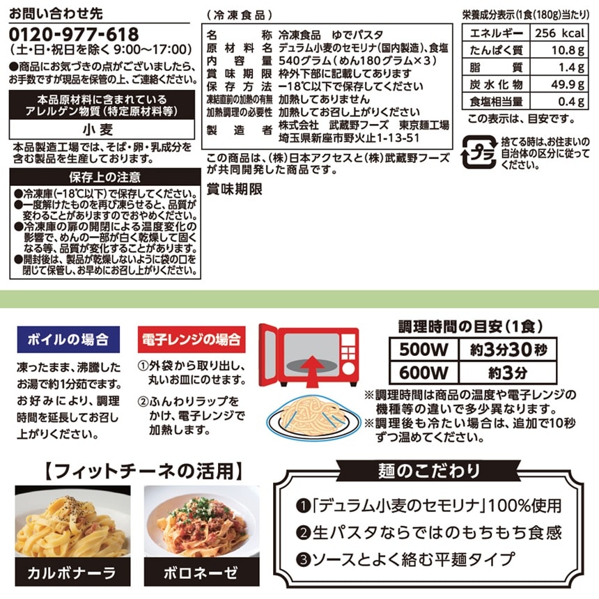 簡便×時短調理茹でたパスタを冷凍しているので、電子レンジで3分温めるだけで完成します。