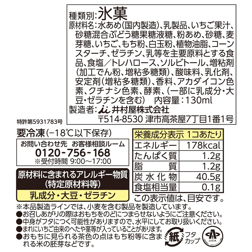 - やわもちアイス いちご練乳氷 130ml
