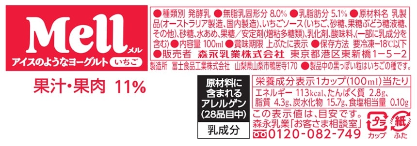 - Mell(メル)アイスのようなヨーグルト いちご 100ml