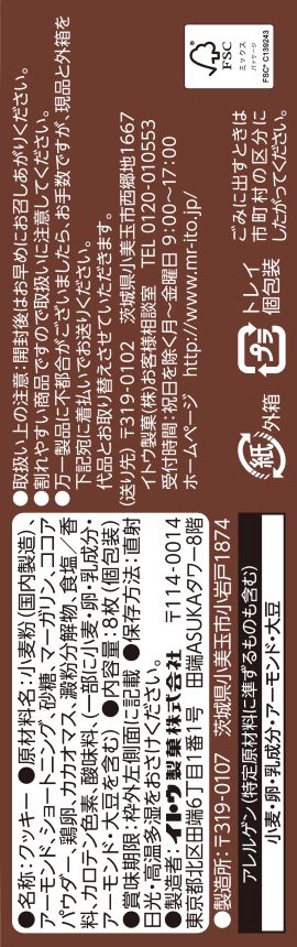 ・コンフェッティ ショコラサブレ 8枚入×12個 - 賞味期限