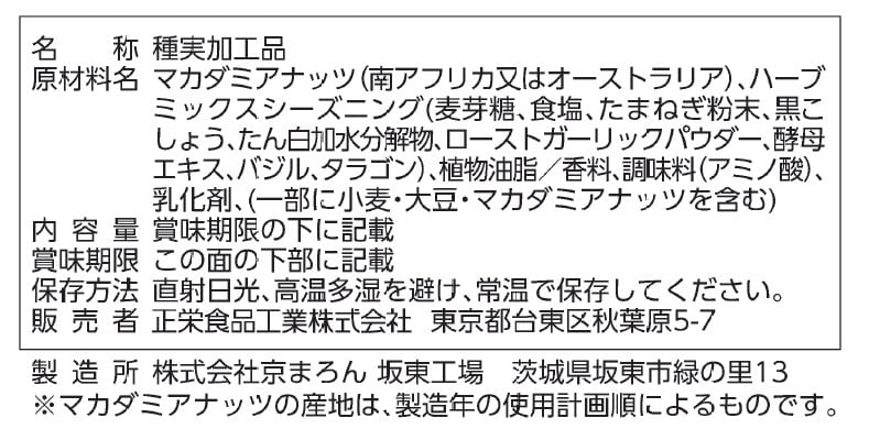 厳選した2種のバーブで、力強いガーリックの風味をマイルドにした味わいです。コリっと食感でしっかりとした食べ応えのマカダミアナッツです。