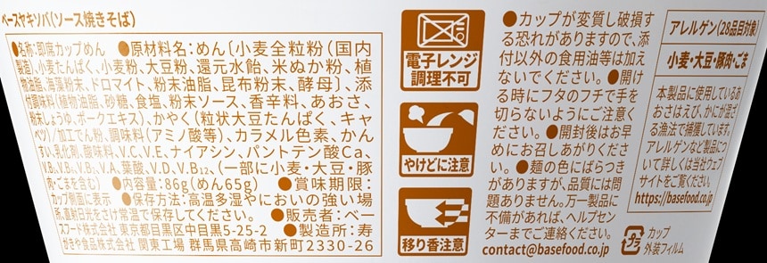 - ・BASE YAKISOBA ソース焼きそば 86g×12個