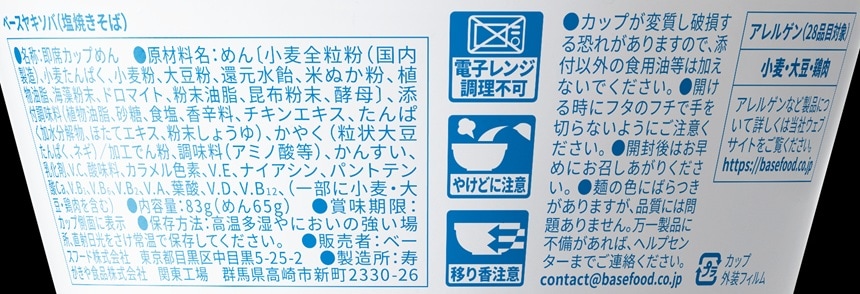 - BASE YAKISOBA ソース焼きそば 86g / 塩焼きそば 83g