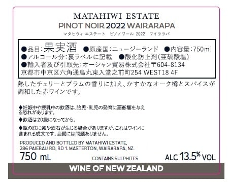 [2種計2本]オーシャン貿易 マタヒウィエステート ピノノワール 750ml / ソーヴィニヨンブラン 750ml
