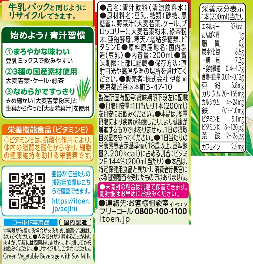 - 豆乳でおいしい 毎日1杯の青汁 すっきりまろやか 紙パック 200ml