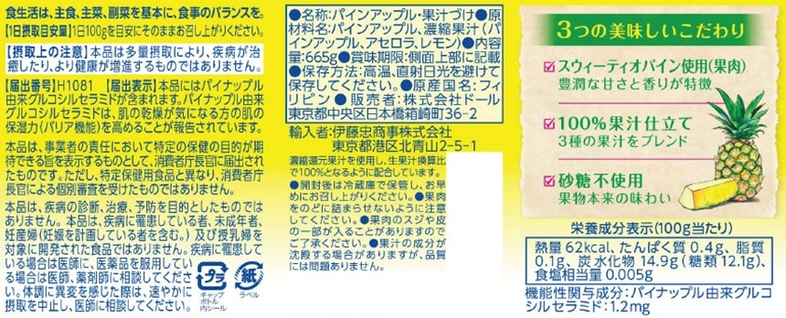 【【機能性表示食品】フルーツボトル スウィーティオパイナップル 665g】