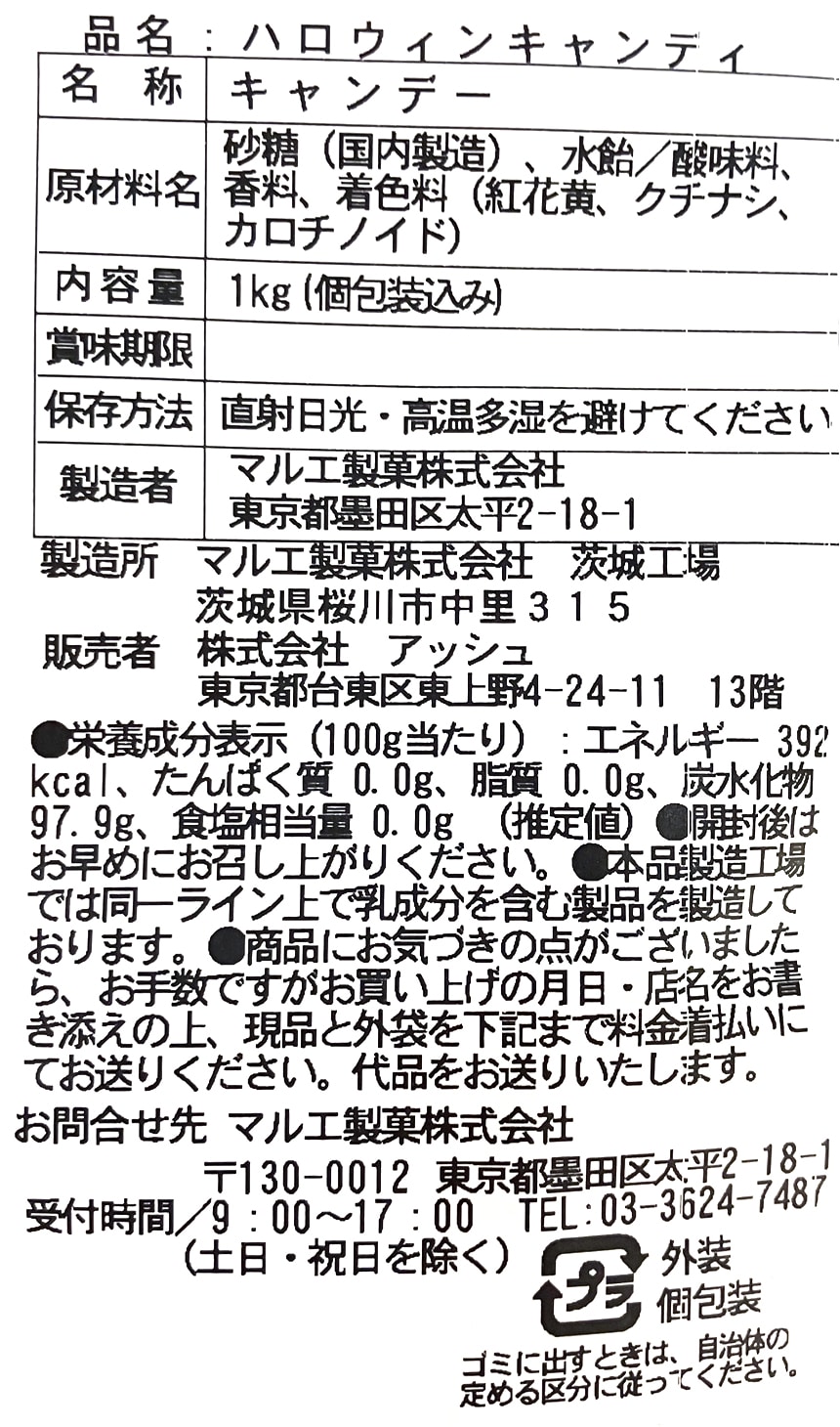 [3個]アッシュ ハロウィンキャンデイ 1kg | オレンジ、サイダー、パイン 3つの味をアソートしました。