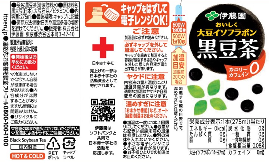 - おいしく大豆イソフラボン 黒豆茶 HOT&COLD兼用・電子レンジ対応 PET 275ml