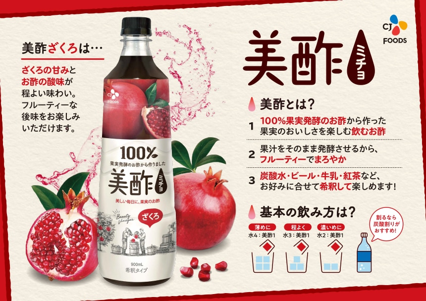[12本]CJ FOODS JAPAN 美酢 ざくろ 900mL | 果実発酵酢を使用したフルーティでまろやかなお酢飲料