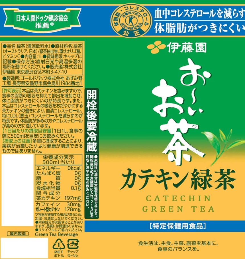 - 【特定保健用食品】お~いお茶 カテキン緑茶 PET 1L