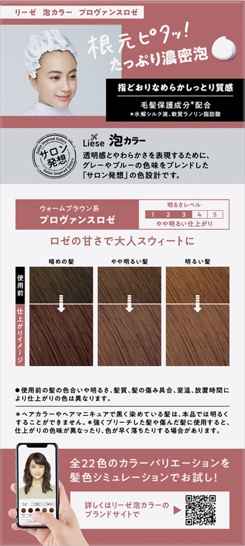 濃密泡が染まりにくい根元や見えない後ろにもしっかり密着して、ムラなく美しい仕上がりを実現。