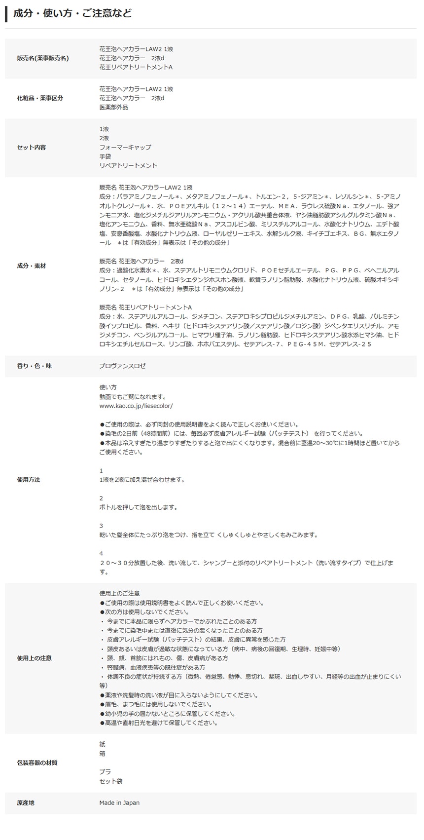 原産国(最終加工地):日本