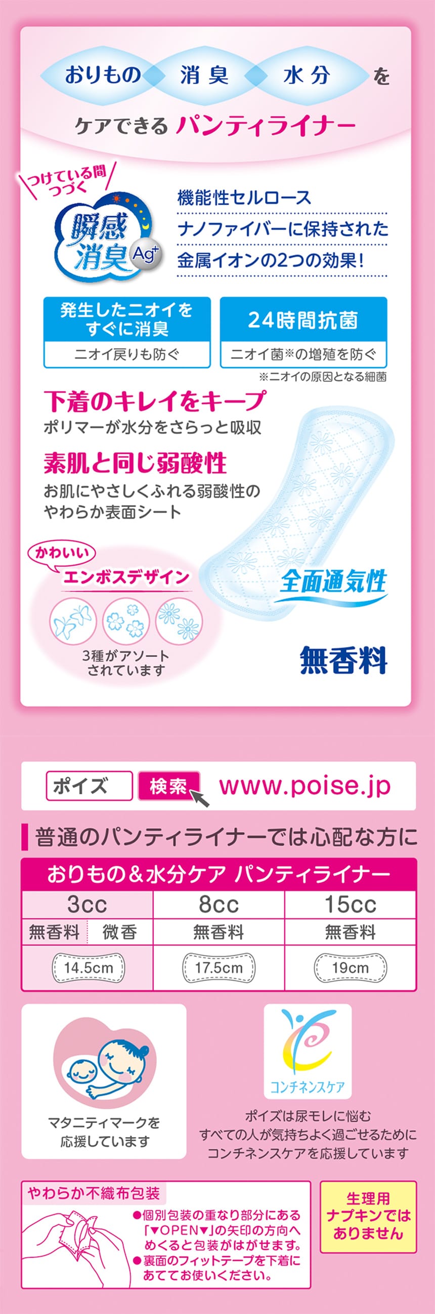 - ポイズさらさら素肌 パンティライナー 無香料 (3cc) 44枚入