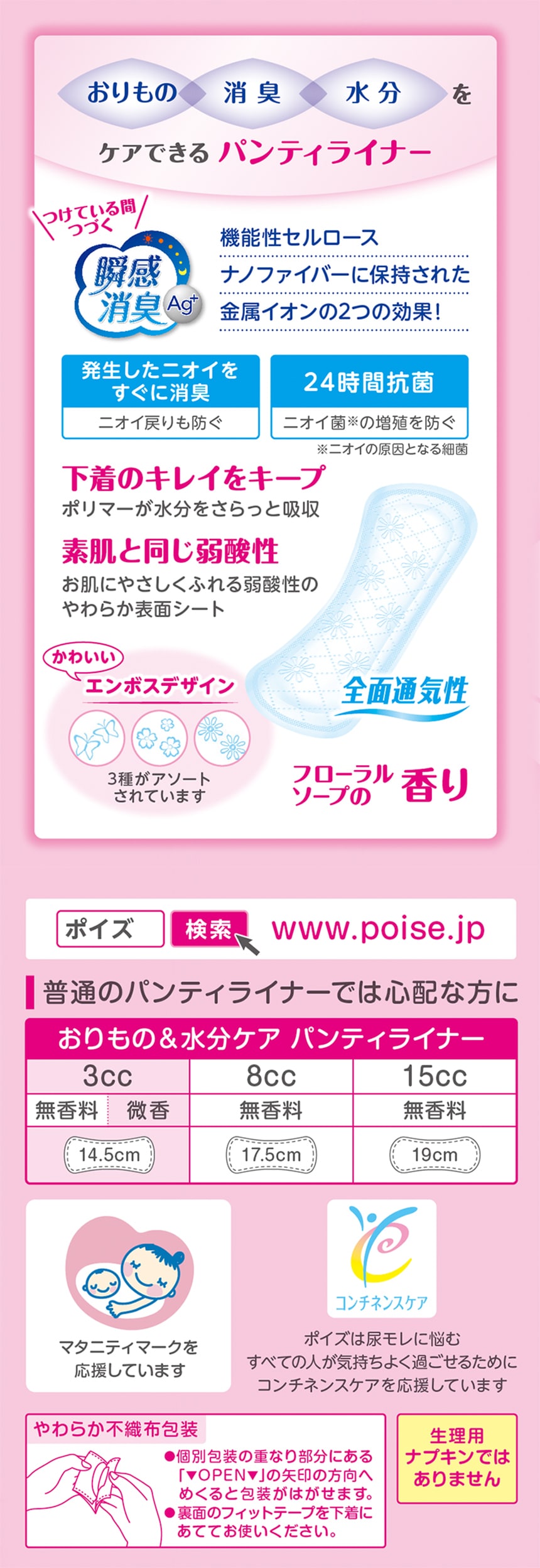 - ポイズさらさら素肌 パンティライナー フローラルソープの香り(3cc) 44枚入