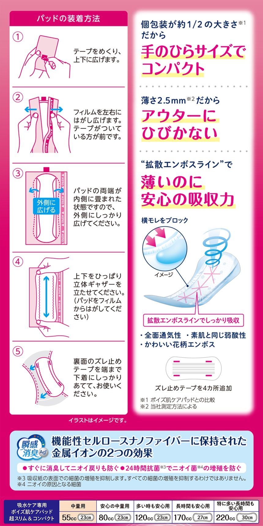 - ポイズ肌ケアパッド 超スリム&コンパクト 中量用 (55cc) 24枚入