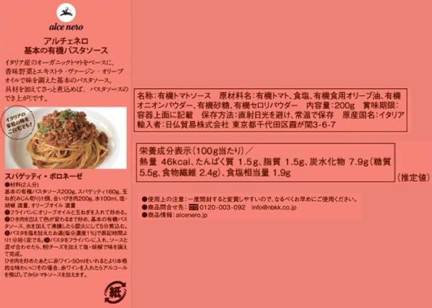 - アルチェネロ 基本の有機パスタソース 200g