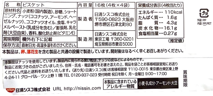 [42袋]日清シスコ ココナッツサブレ トリプルナッツ 16枚入