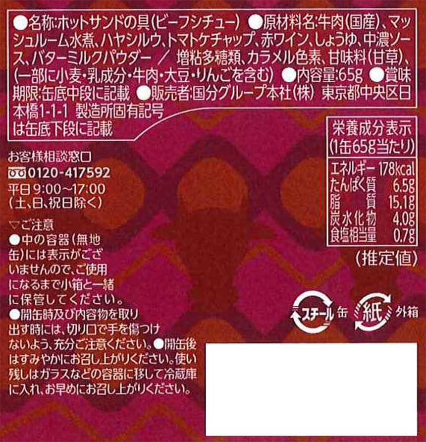 [12個]国分グループ本社 K&K "CAN"Pの達人 ホットサンドの具 ビーフシチュー味 65g