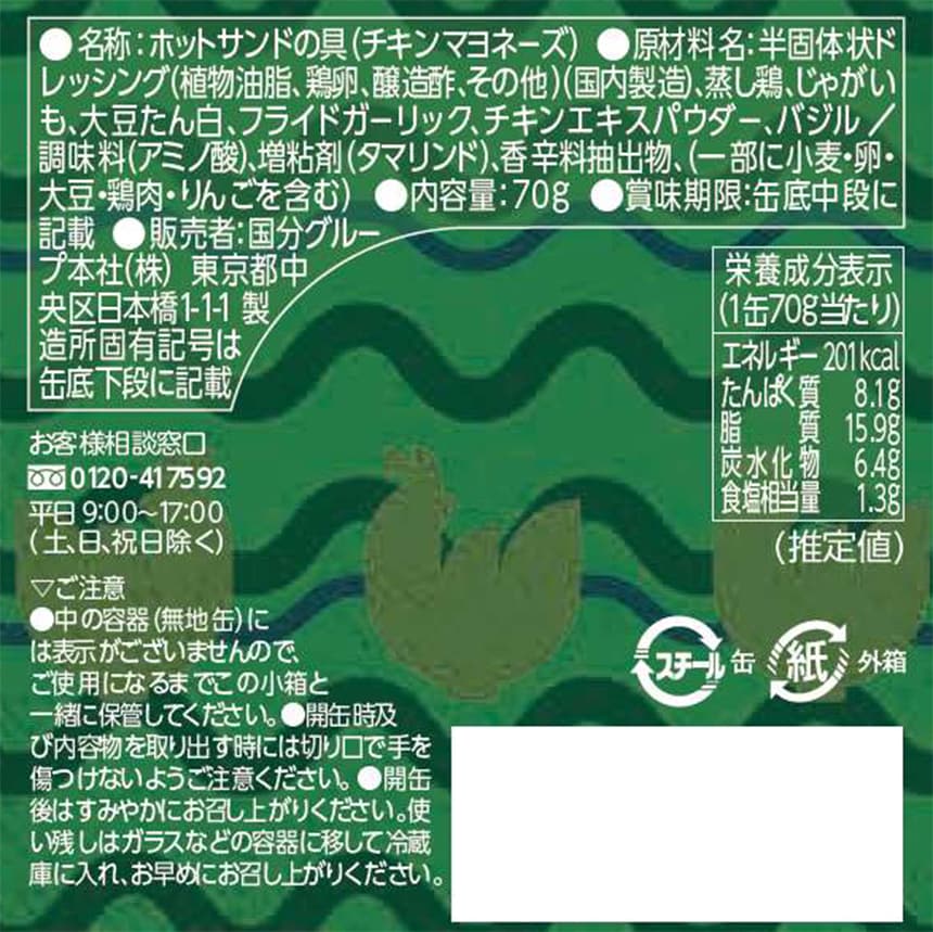 [12個]国分グループ本社 K&K "CAN"Pの達人 ホットサンドの具 チキンマヨネーズ味 70g
