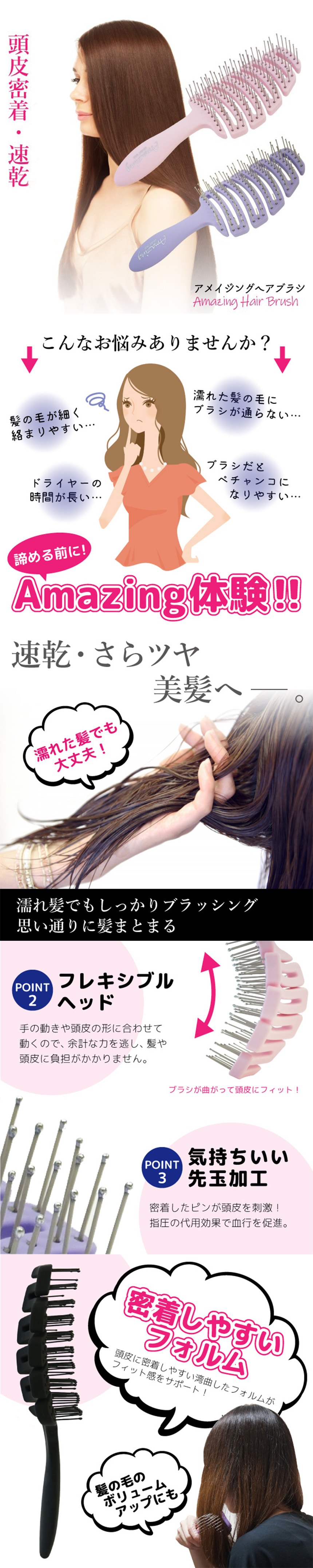 アメイジングブラシの特殊なブラシ形状が頭皮に密着。