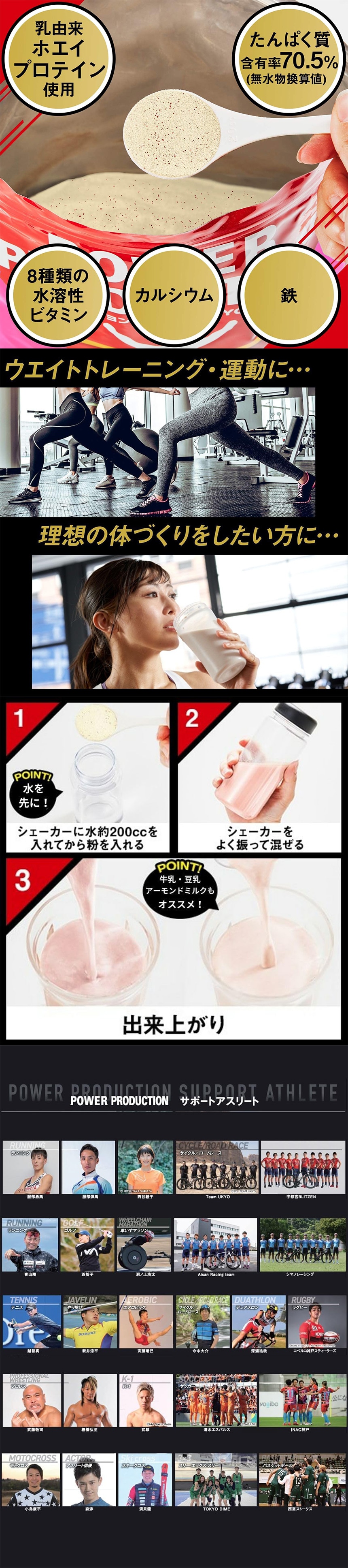 吸収の速いホエイたんぱくを使用したプロテインです。特にたんぱく質は体づくりには欠かせない栄養素です。毎日おいしく続けられるおいしさ!毎日飽きることなく飲み続けることができます。いちご果肉を配合し、フルーティーな味わいです。