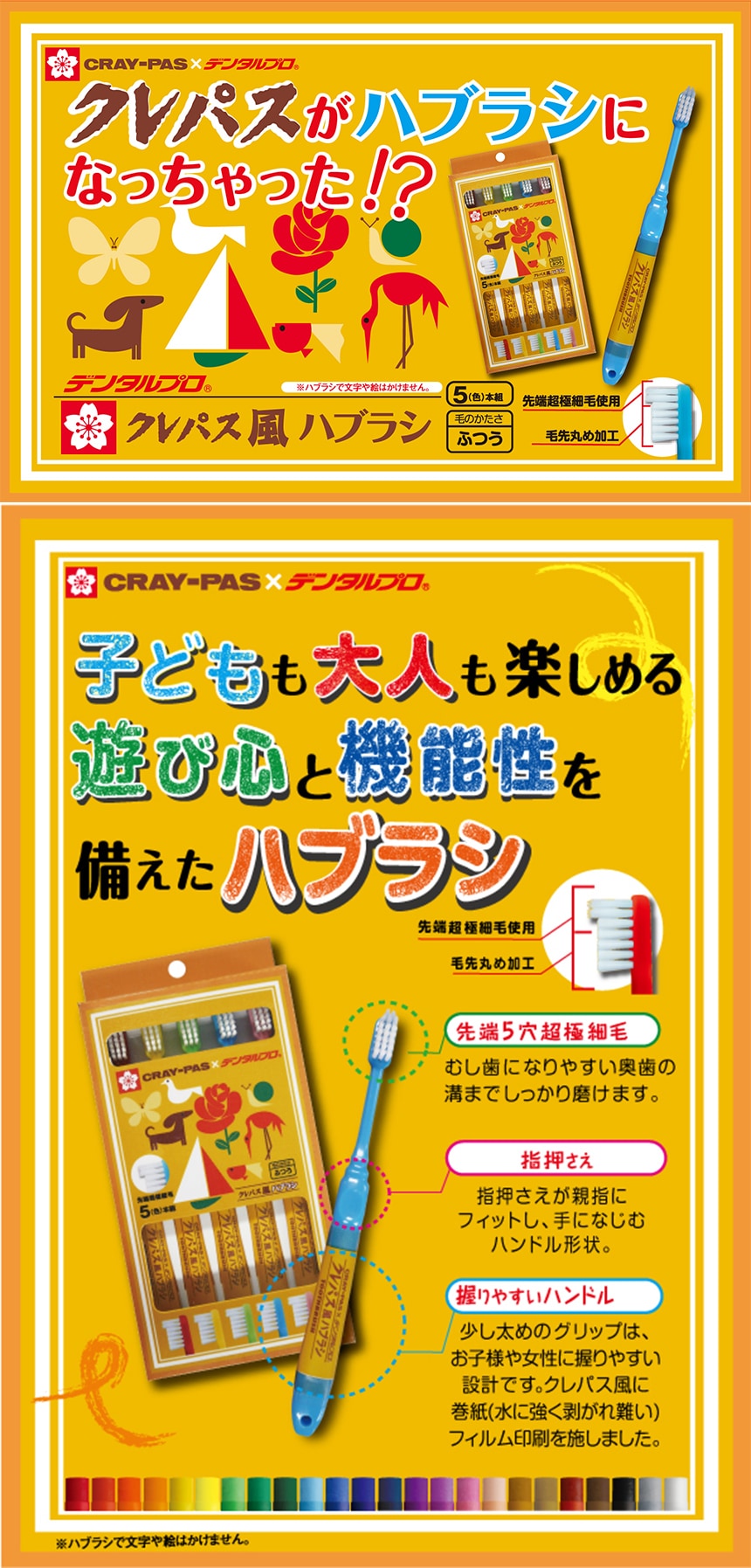[6セット]デンタルプロ クレパス風ハブラシ ふつう 5本組 | サクラクレパスの「クレパス」デザインをそのままハブラシに。先端5穴に超極細毛使用