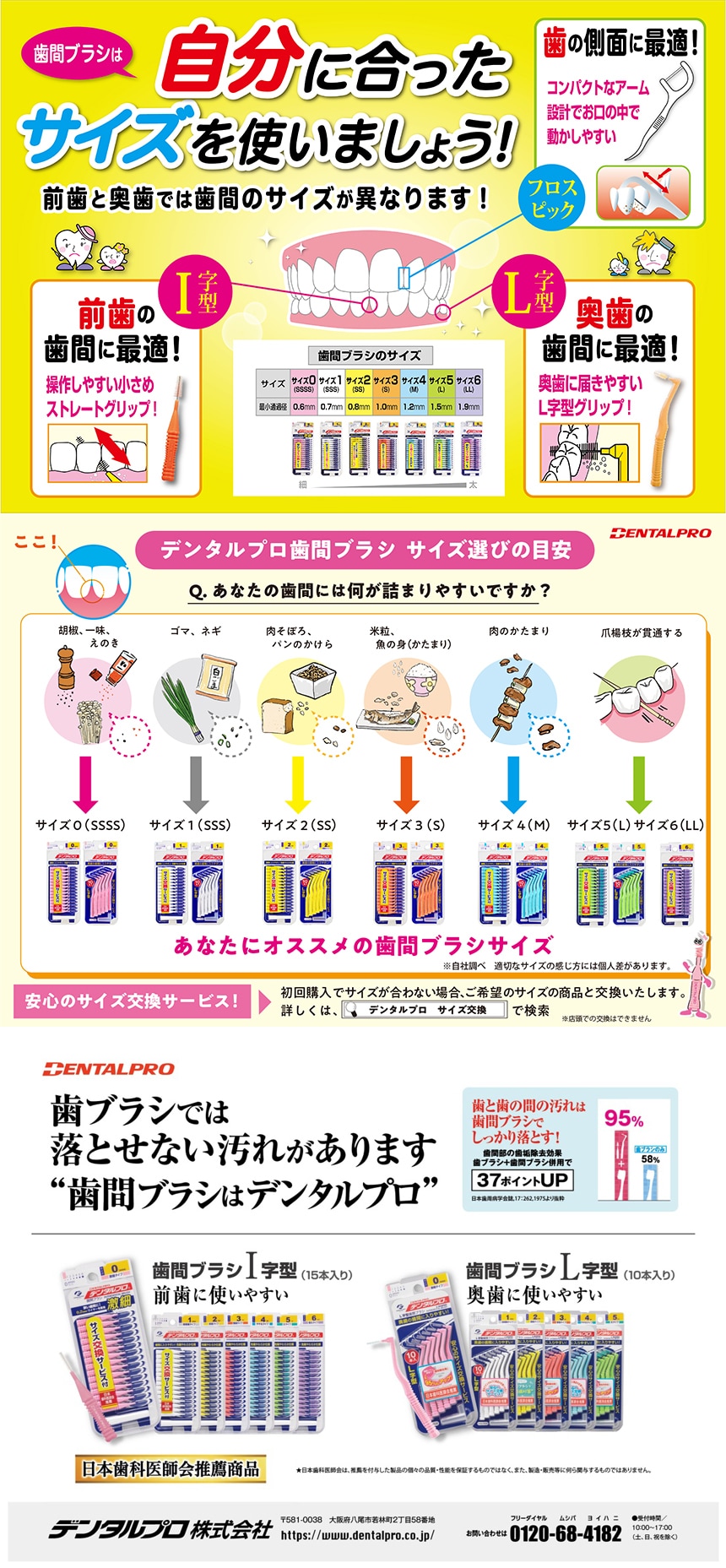 [6個]デンタルプロ 歯間ブラシ L字型 やや太タイプ サイズ(4M) 10本入 | 歯間部に挿入しやすいように先端にやわらかい用毛を使用しています。