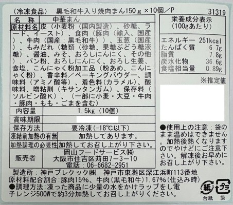 - 神戸中華街の黒毛和牛入り焼肉まん 1.5kg(10個)
