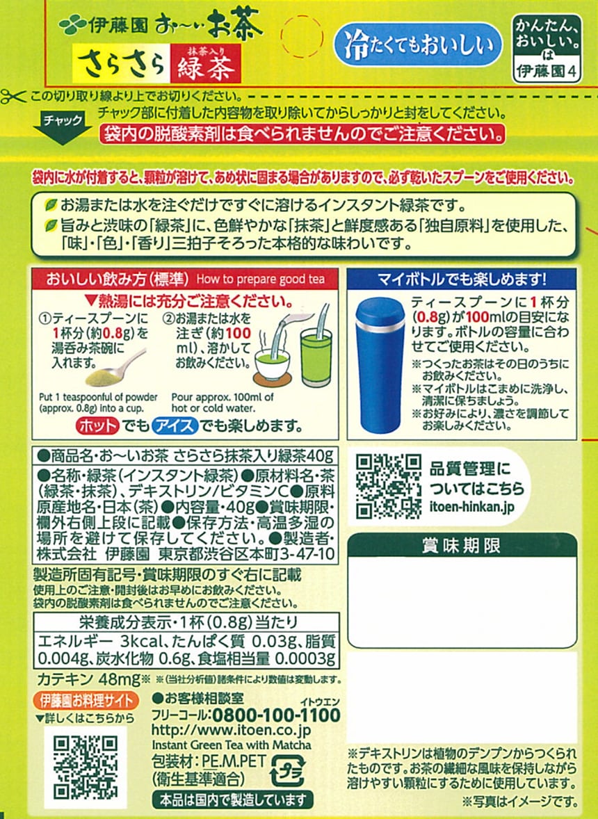 - さらさらとける お~いお茶 抹茶入り緑茶 40g(約50杯分)