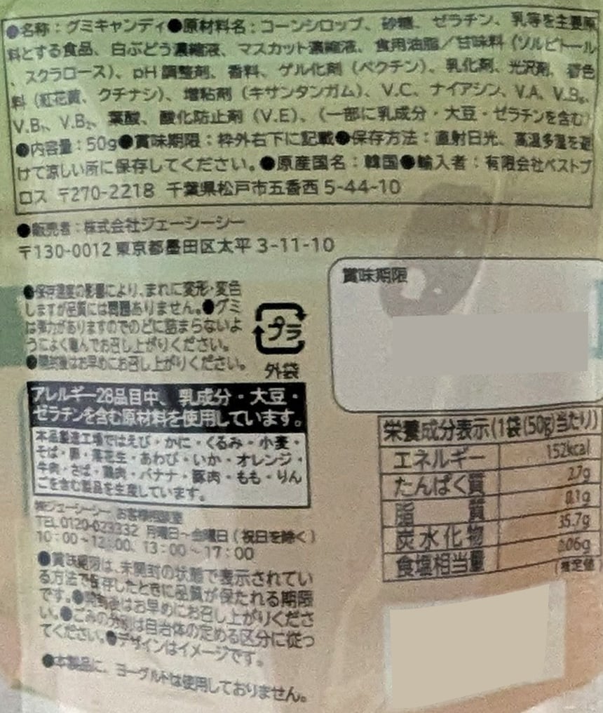日本初上陸の「マスカット味」のヨーグルトグミです。