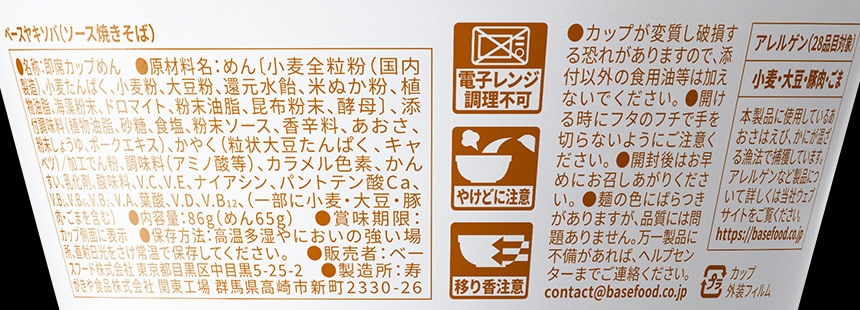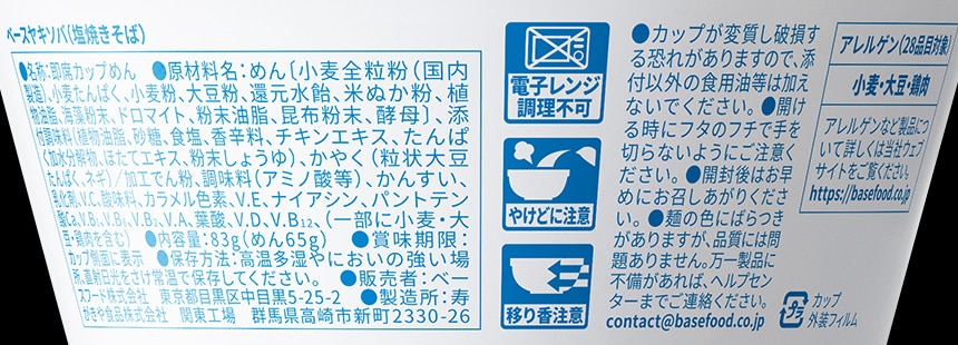 - ・BASE YAKISOBA ソース焼きそば 86g×4個