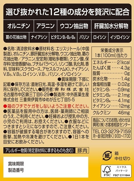 [10本]興和 カンゾコーワドリンク1000 100ml | 12成分贅沢配合の健康ドリンク しじみ1000個分相当のアラニン・オルニチンなどを配合