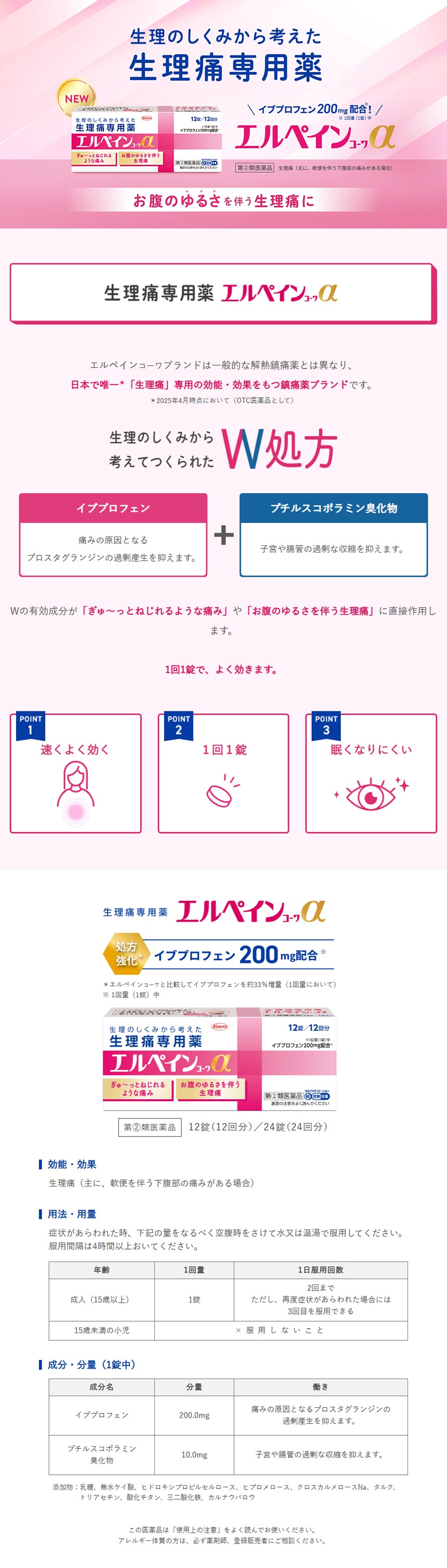 [3個]【指定第2類医薬品】興和 エルペインコーワα 12錠 | 生理のしくみから考えた「生理痛専用薬」が痛みに速くよく効く