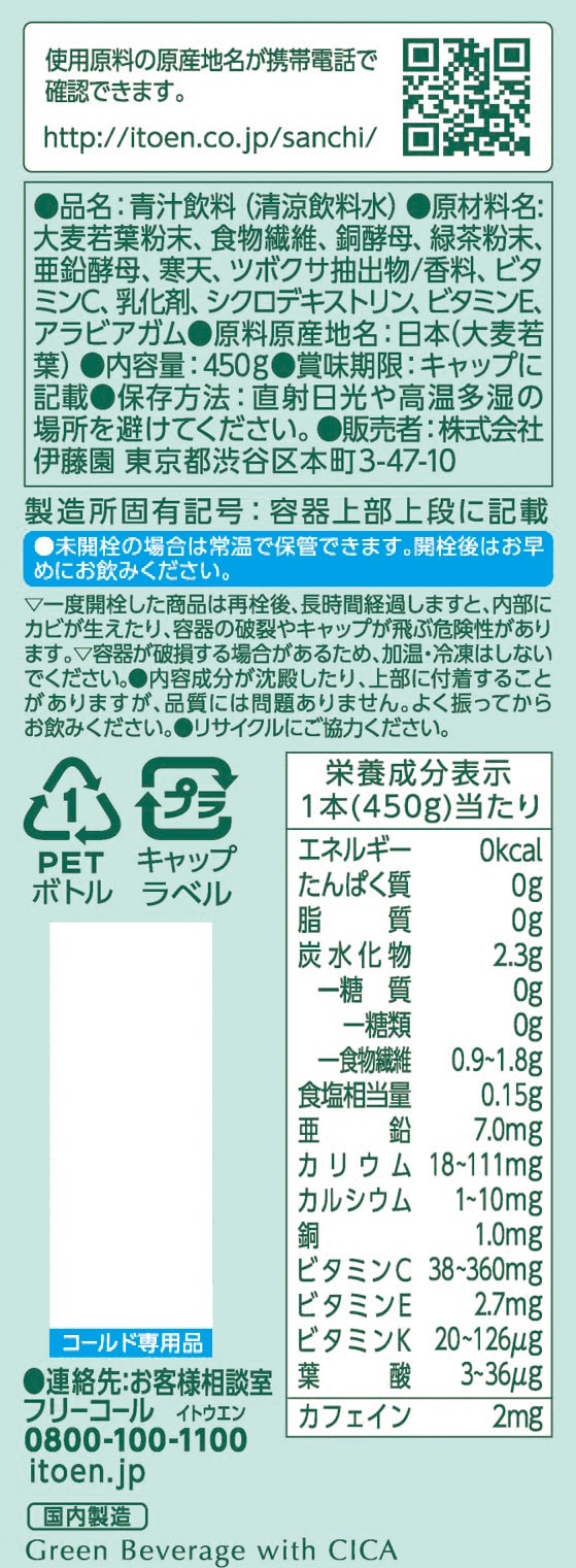 [48本]伊藤園 Inner Green インナーグリーン PET 450g | 内側から輝きたい方へ無糖青汁飲料