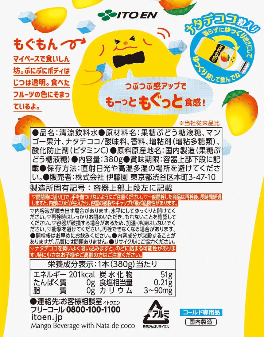 - もぐっと ナタデココ&とろっとマンゴー ボトル缶 380g