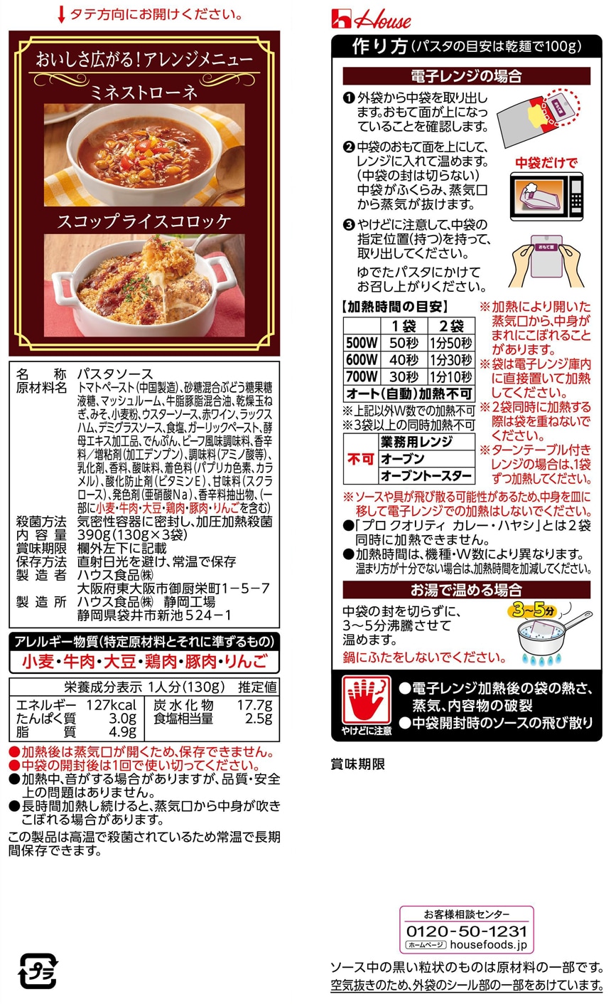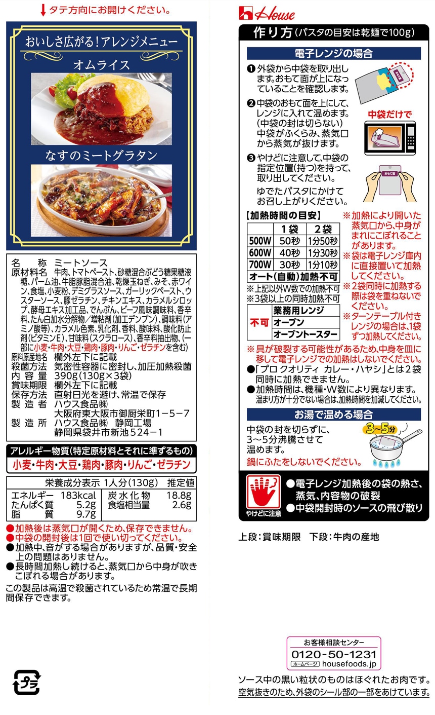 - ・プロクオリティ パスタソース 濃厚ボロネーゼ 計18食(390g(130g×3食入)×6袋)