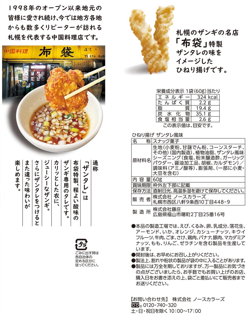 [40個]ノースカラーズ ひねり揚げ ザンタレ風味 60g | 札幌のザンギの名店「布袋」特製ザンタレの味をイメージしたひねり揚げです。