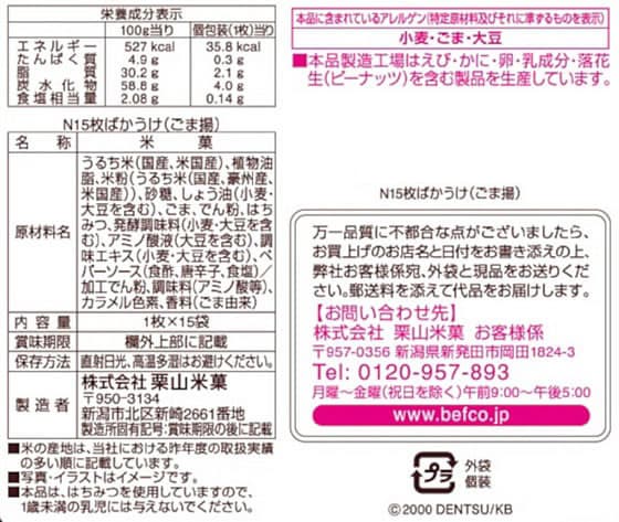 [24個]栗山米菓 ばかうけ ごま揚 15袋入