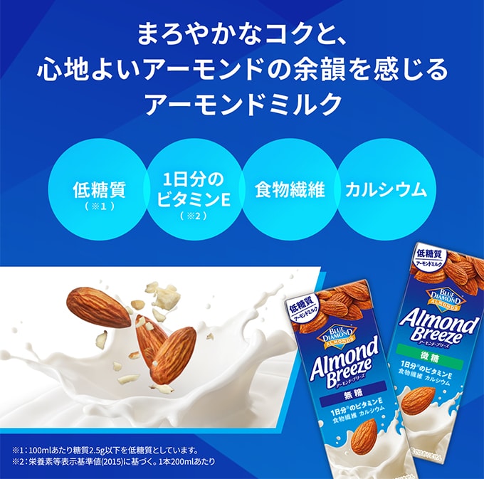 カリフォルニア契約農園アーモンド使用のアーモンドミルク。