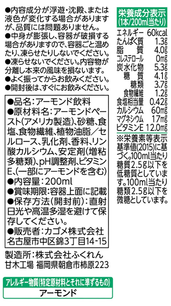 [24本]カゴメ アーモンド・ブリーズ 微糖 200ml | 全米No.1アーモンドミルク。カリフォルニア契約農園アーモンド使用。1日分のビタミンE