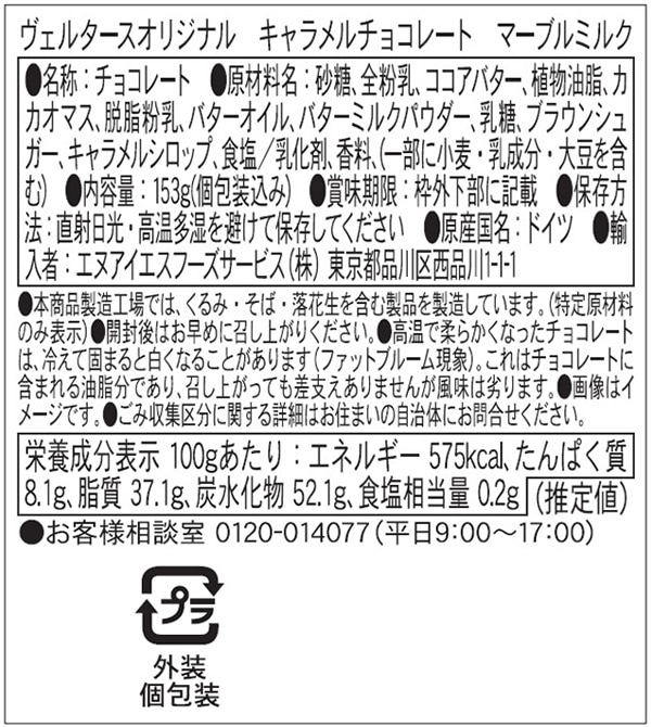 - ヴェルタースオリジナル キャラメルチョコレート マーブルミルク 153g