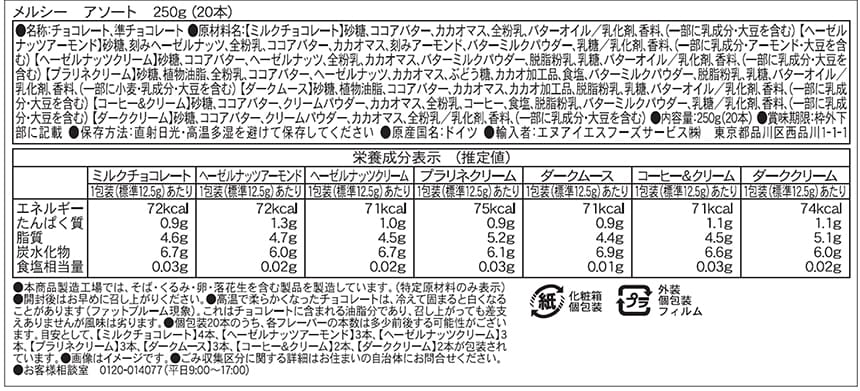 [5箱]メルシー アソート 250g(20本) | 7種のヨーロピアンチョコレートが20本入っています。