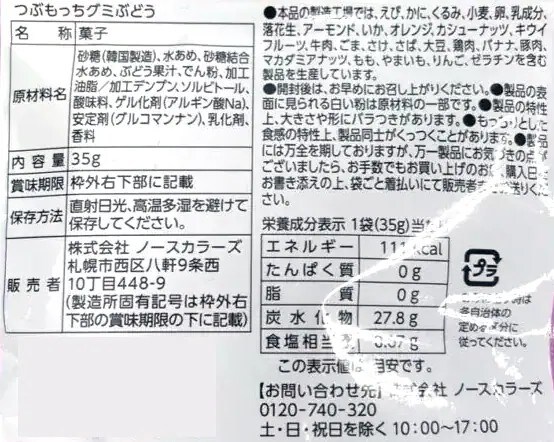[32個]ノースカラーズ つぶもっちグミぶどう 35g | ぶどうのデラウェアをイメージしたもちもち食感の小粒グミです。